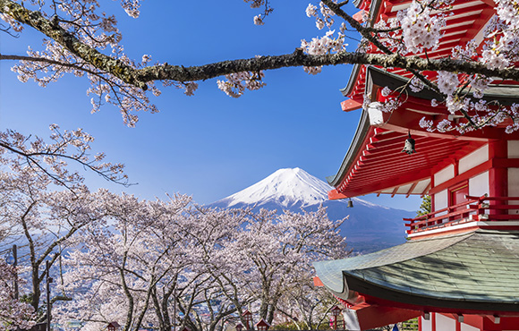 海外で紹介される日本の写真は、ほとんどがこの場所で撮られた写真。富士山をバックに桜と五重の塔、一度は訪れたい名勝地です。景色を楽しんだ後は富士吉田本町通りのレトロな街並みを堪能するのもお勧めです。
